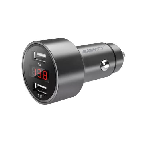 Eightt – Cargador de coche USB – 2 Puertos 5V – 2.4A 12W – Aluminio