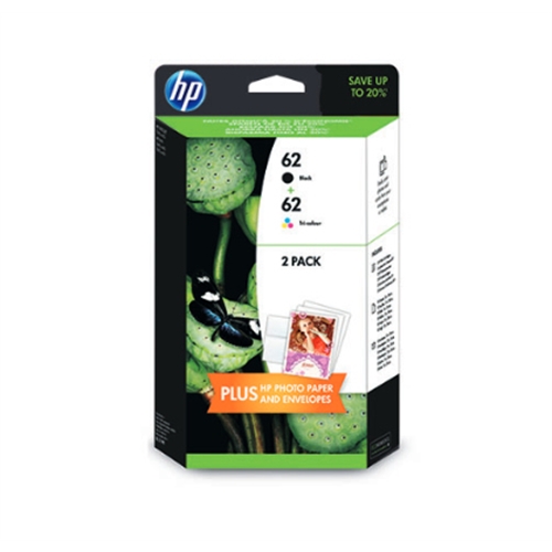 Pack de ahorro de 2 cartuchos de tinta original HP 62 negro/tricolor