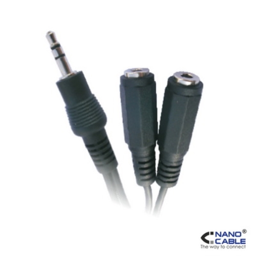 Nanocable – Cable duplicador audio minijack de 15cm conexión 2×3.5/H-3.5/M – Duplica salida de audio