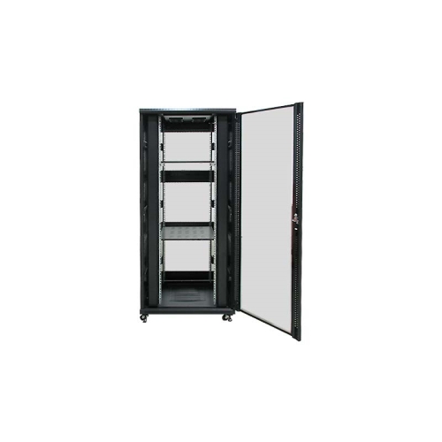 Armario rack suelo 19″ PHASAK-PRO 42U 800×1000 negro, 2 bandejas fijas+Ventilación X4-12″ + Regleta X6 (INCLUYE MONTAJE Y PORTES)