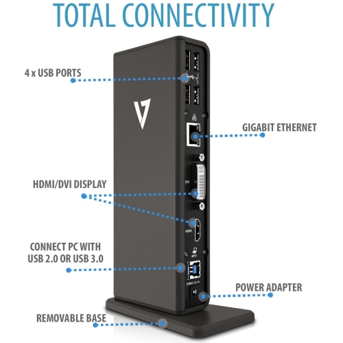 V7 – Docking Station UDDS-1E – Entrada USB 3.0 – Salidas 2xUSB 3.0 – 4xUSB 2.0 – HDMI – DVI – Gigabit Lan – Alimentación Externa